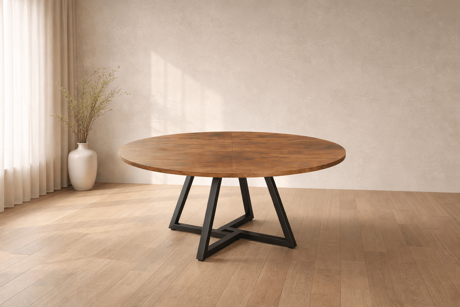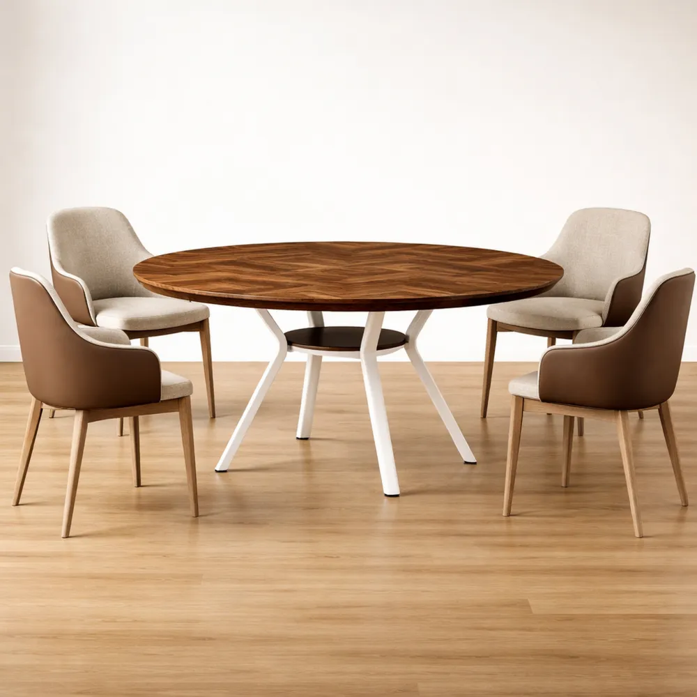 Table ronde en bois pour salle à manger, capacité 4-6 personnes, style industriel