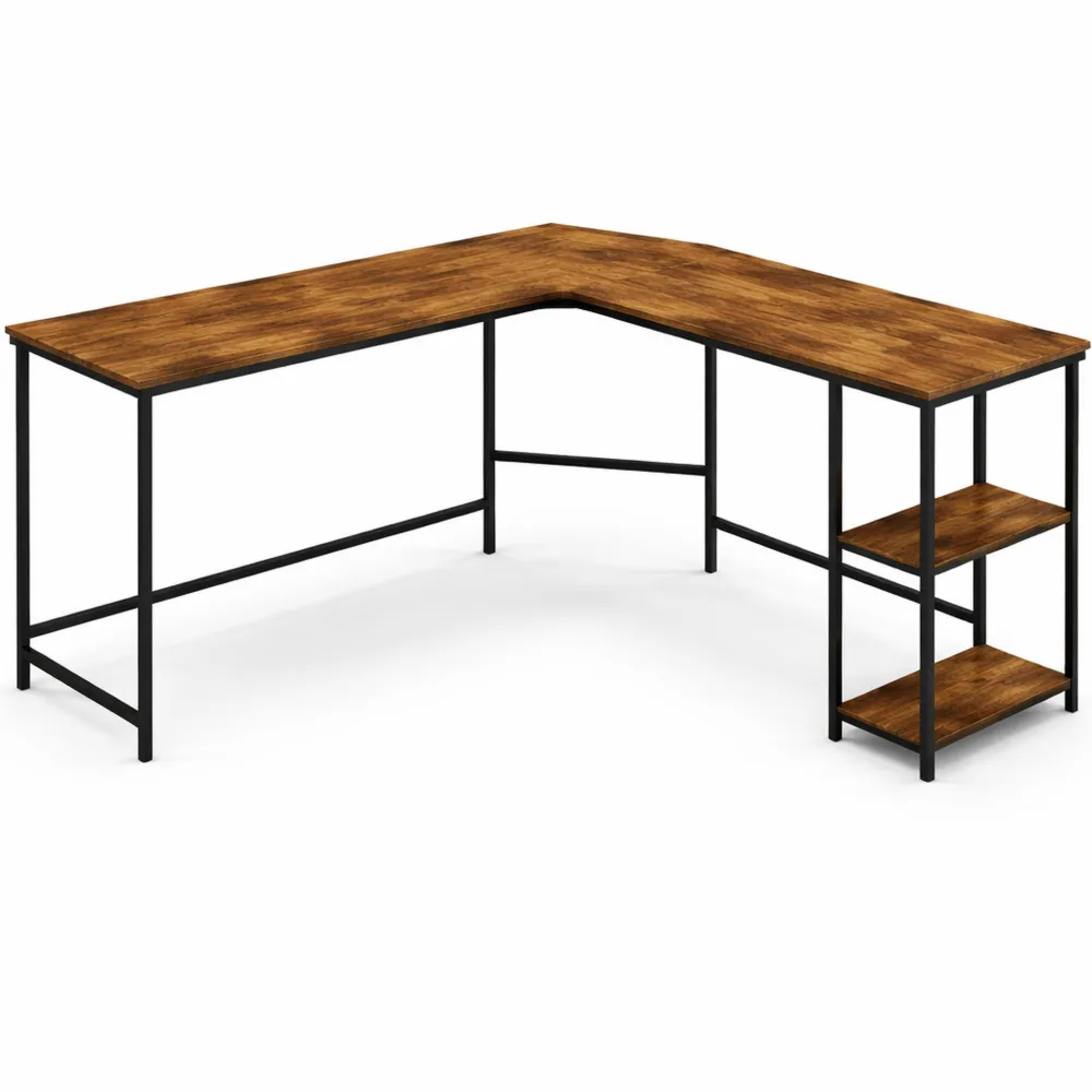 Table d'ordinateur en L avec étagères, design industriel, espace de travail en métal, table de jeu pour bureau, salle d'étude